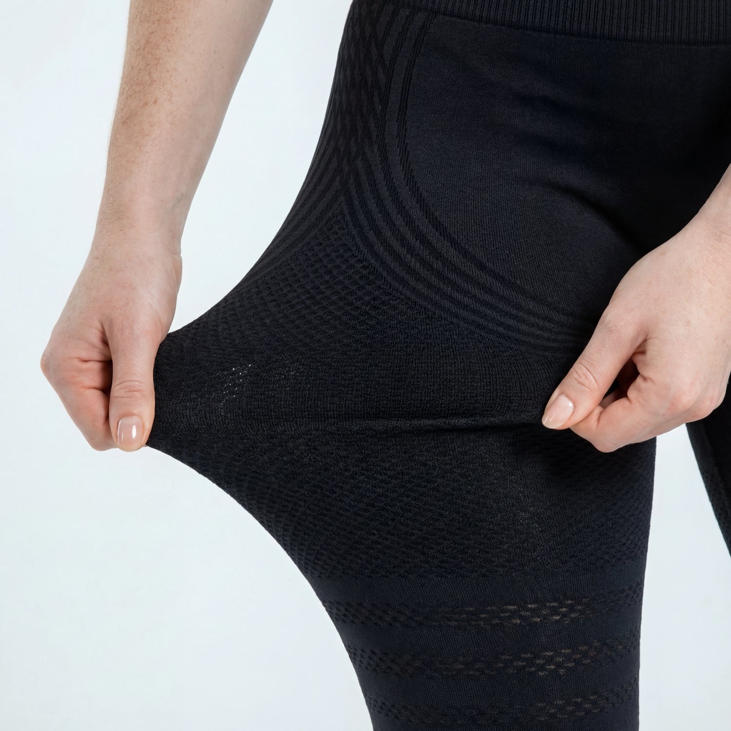 W połączeniu z kompresją 3D, ujędrniają nogi i sprawiają, że wyglądają na jędrniejsze.